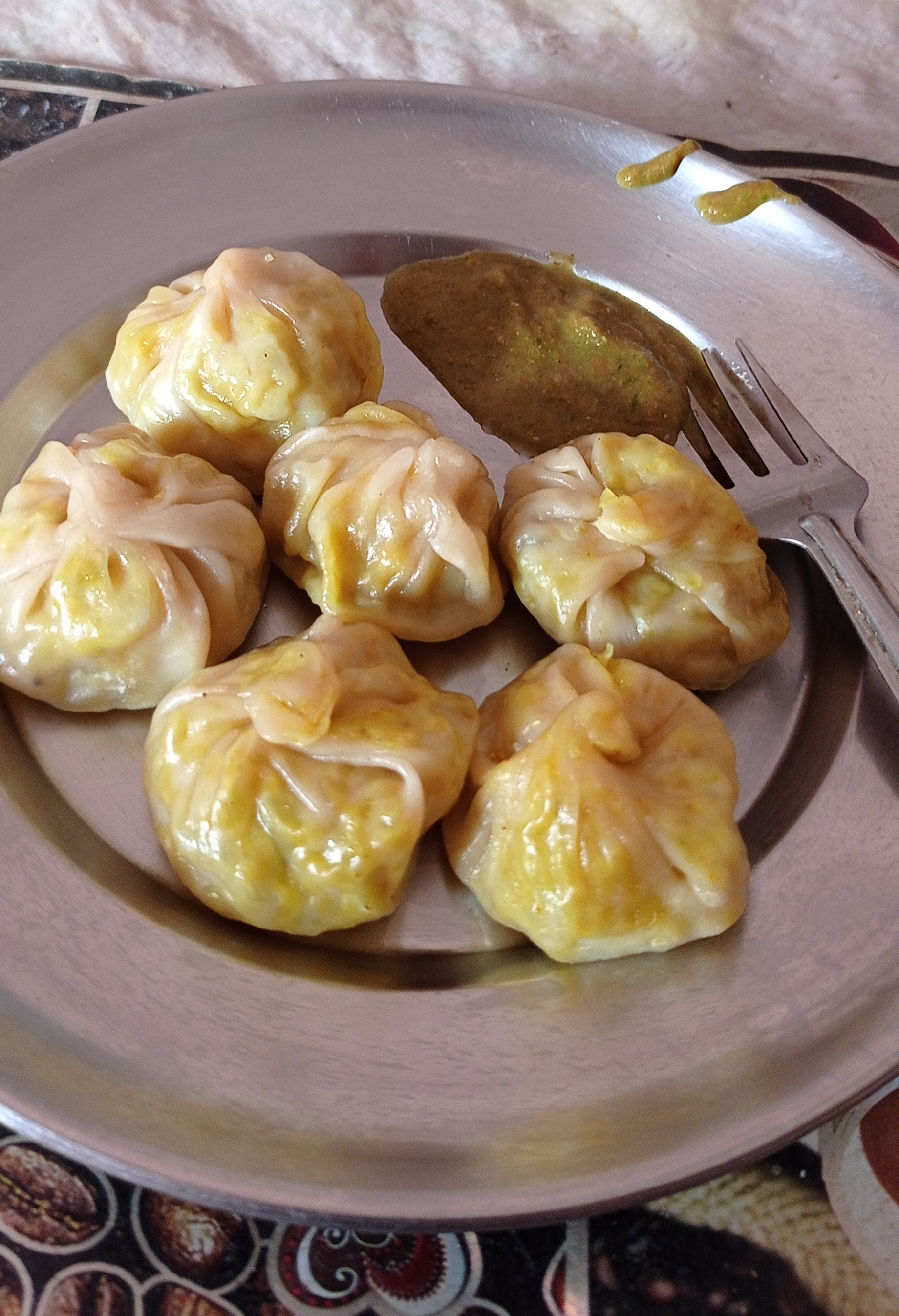 Momos are originally from Tibet. People use different type of ingredients like onion. garlic, ginger, cabbage and curry powder. You can also find meat momos too with chicken, mutton or buff meat. Momos are commonly served with a spicy chutney and are a delicious starter dish (be aware though that they usually take at least 30 minutes).